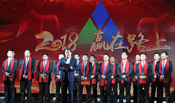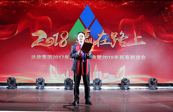 集團高管們在澎湃的“我們走在大路上”聲中激情登場,公司董事長馬和軍進行了致辭答謝。他回顧了集團一年來所取得的輝煌成績,感謝社會各界及全體達欣人的努力,并對公司的未來之路描繪了新的發(fā)展藍圖;接著,縣委書記顧國標(biāo)發(fā)表講話, 他指出,作為全縣經(jīng)濟社會發(fā)展的重要板塊,我縣建筑業(yè)總體發(fā)展態(tài)勢良好,總量和質(zhì)量穩(wěn)步提升。作為“海安建筑鐵軍”中的一支老牌“勁旅”,達欣集團的市場競爭力和品牌影響力不斷提升,他對公司2018年工作提出了新的希望,寄語未來集團要進一步深化企業(yè)體制機制創(chuàng)新,全面加快產(chǎn)業(yè)升級步伐,全面實施“科技強企”戰(zhàn)略,搶抓機遇,精準(zhǔn)定位,打造達欣更加輝煌的未來!