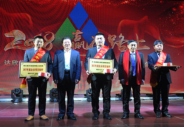 集團黨委書記劉厚純宣讀了表彰決定, 縣領(lǐng)導(dǎo)為獲得集團2017年度的項目標(biāo)桿、達欣工匠、青年標(biāo)兵等先進代表進行了頒獎。