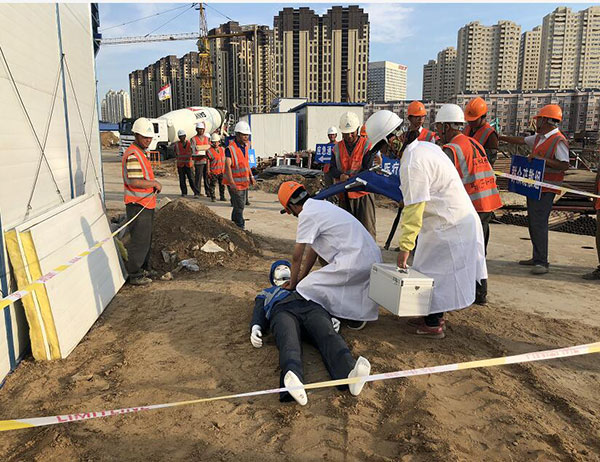 此次應急救援預案演練模擬施工工人從高處墜落。“意外”發(fā)生后,現(xiàn)場負責人立即組織人員撤出危險區(qū),并在匯報情況后聽從指示在第一時間啟動應急預案。在應急總指揮的指令下,救援小組迅速就位,并有序展開警戒護衛(wèi)、技術排險、現(xiàn)場搶險、醫(yī)療救護等各項救援工作,使險情得到有效控制,隨后,傷員被送往醫(yī)院進行救治。