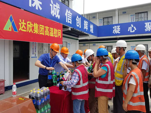 在項目部,集團(tuán)公司領(lǐng)導(dǎo)將人丹、花露水、雪碧等防暑降溫用品發(fā)放給每一位職工,同時叮囑大家夏季高溫作業(yè)時,注意防暑降溫。另外,員工養(yǎng)成良好的生活衛(wèi)生習(xí)慣,不疲勞上崗、不帶不良情緒上崗,以良好的精神狀態(tài)上好班。