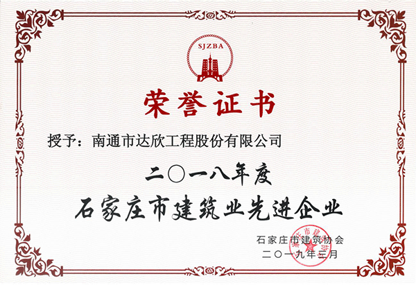 我司被石家莊市建筑協(xié)會(huì)評(píng)為“2018年度石家莊市建筑業(yè)先進(jìn)企業(yè)”同時(shí),楊靜同志評(píng)為“2018年度石家莊市建筑業(yè)優(yōu)秀企業(yè)經(jīng)理”,劉紅強(qiáng)同志被評(píng)為“2018年度石家莊市建筑業(yè)優(yōu)秀項(xiàng)目經(jīng)理”,被河北省建筑業(yè)協(xié)會(huì)評(píng)為“2018年度河北省建筑業(yè)先進(jìn)企業(yè)”、“河北省建筑業(yè)AAA級(jí)社會(huì)誠信企業(yè)”,這是我司連續(xù)多次獲此殊榮;同時(shí),徐仁忠、楊靜同志被評(píng)為“2018年度河北省建筑業(yè)優(yōu)秀企業(yè)管理者”,傅海榮同志被評(píng)為“2018年度河北省建筑業(yè)優(yōu)秀總工程師”。
