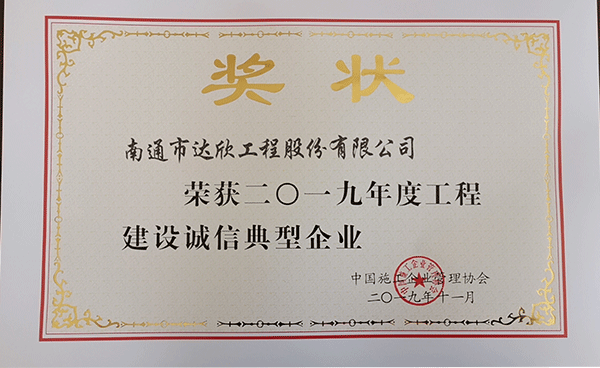 榮譽既是對過往成績的一種鼓勵,也是對未來發(fā)展的一種鞭策。達欣集團將充分發(fā)揮誠信典型示范作用,增強誠信意識、守約自律,不斷提高誠信管理水平,向社會奉獻更多精品工程,打造達欣品牌形象。