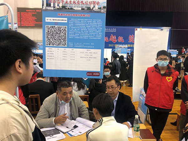 近日,第八工程公司組織參加了湖南省水利水電職業(yè)技術(shù)學(xué)院2021屆畢業(yè)生秋季大型校園招聘會(huì)。會(huì)上,通過積極推薦及宣傳,有許多優(yōu)秀畢業(yè)生對(duì)我司頗感興趣,紛紛表示有意向來公司就職,有些學(xué)生甚至得到老師的推薦專程來我司展位臺(tái)應(yīng)聘。我們將積極而為,通過此次招聘雙向選擇,為企業(yè)選用優(yōu)秀的畢業(yè)生,助力企業(yè)高質(zhì)量發(fā)展提供人才保障。