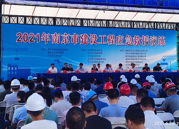 6月28日,由南京市城鄉(xiāng)建設委員會、南京市應急管理局、江寧區(qū)人民政府主辦的“南京市建設工程應急救援演練觀摩會”在第二工程公司蘇沃科技園項目部召開。南京市建委副書記朱家祥、南京市安委辦專職副主任韓成頌;江寧區(qū)人民政府副區(qū)長孫兆金、江寧區(qū)城鄉(xiāng)建設局局長易強等領導,全市施工企業(yè)、監(jiān)理單位、建設單位負責人及相關人員等近500余人參加本次活動。集團常務副總經(jīng)理王邦國主席臺就坐。
