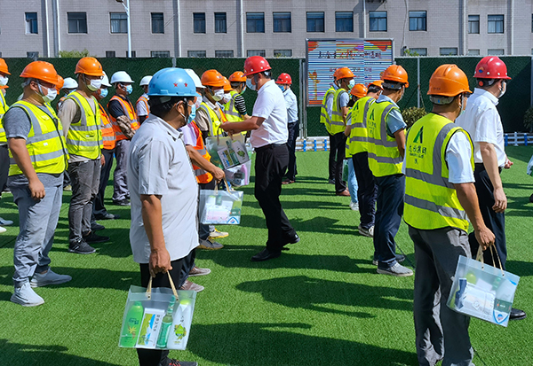 黃市長代表市委、市政府,向高溫期間奮戰(zhàn)在一線的達欣集團廣大職工表達慰問,并發(fā)放了慰問品。他表示,如皋市建筑業(yè)的發(fā)展離不開廣大一線職工的辛勤付出,希望大家安心工作,注意安全,做好夏季防暑降溫,市委、市政府永遠是大家最堅實的后盾。