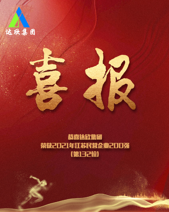 9月23日,由江蘇省工商聯(lián)發(fā)布的2021民營企業(yè)200強名單出爐。達欣集團排位132位。