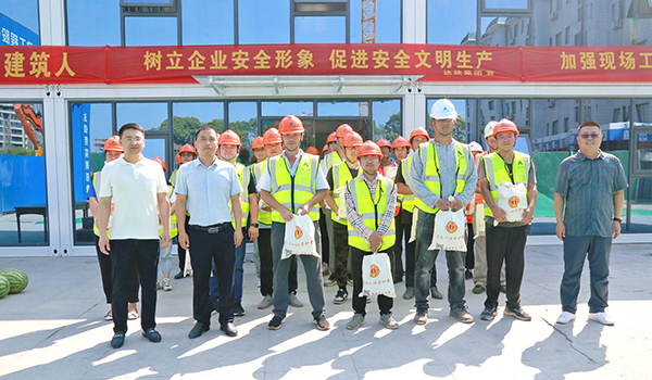 8月11日上午,海安市總工會(huì)黨組成員、副主席劉學(xué)亮一行來(lái)到集團(tuán)第九工程公司承建的海安高級(jí)中學(xué)公寓樓項(xiàng)目部,開(kāi)展“高溫送清涼,防控不松懈”夏季慰問(wèn)活動(dòng)。集團(tuán)常務(wù)副總經(jīng)理王邦國(guó)、第九工程公司經(jīng)理陸良兵等陪同。