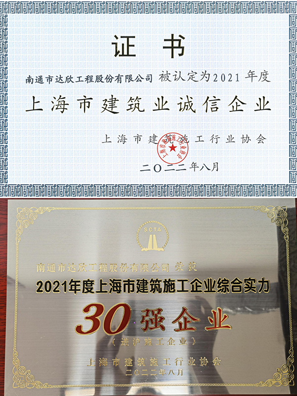 近日,上海市建筑施工行業(yè)協(xié)會公布了2021年度“上海市建筑業(yè)誠信企業(yè)”和“上海市建筑施工企業(yè)綜合實(shí)力”認(rèn)定結(jié)果。第一工程公司連續(xù)14年獲得“上海市建筑業(yè)誠信企業(yè)”和“上海市建筑施工企業(yè)綜合實(shí)力”稱號。