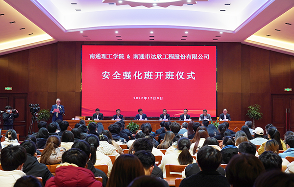 12月8日下午,南通理工學(xué)院-達(dá)欣集團(tuán)校企合作“安全強(qiáng)化班”開班儀式,在南通理工學(xué)院海安校區(qū)舉行。南通理工學(xué)院董事長陳明宇,黨委副書記、海安校區(qū)黨工委書記、管委會副主任周宗泉,校長助理、海安校區(qū)管委會副主任謝衛(wèi)軍等校領(lǐng)導(dǎo);達(dá)欣集團(tuán)董事長馬和軍,黨委書記劉厚純,常務(wù)副總經(jīng)理王邦國,副總經(jīng)理、安全總監(jiān)、工會主席溫鶴華等出席活動。南通理工學(xué)院建筑工程學(xué)院院長、黨總支書記劉榮桂主持會議。