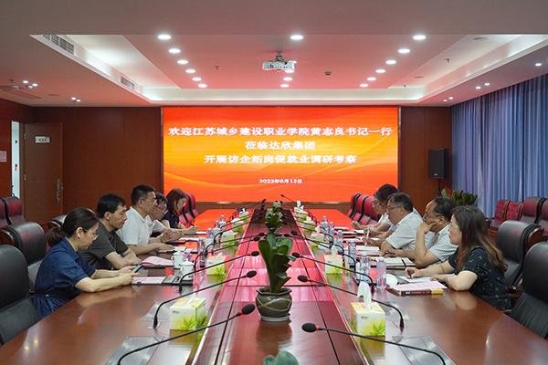 6月13日,江蘇城鄉(xiāng)建設(shè)職業(yè)學(xué)院黨委書記黃志良,黨委委員、副校長毛浩生,黨委委員、組織人事處處長徐祖平,土木工程學(xué)院院長楊建華,招生就業(yè)處副處長陳敏等校方領(lǐng)導(dǎo)一行蒞臨達欣集團走訪調(diào)研,集團領(lǐng)導(dǎo)王邦國、馬軍、史立平等陪同。