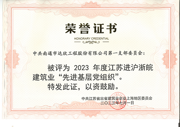 近日,從江蘇省住房和城鄉(xiāng)建設(shè)廳駐上海辦事處傳來(lái)喜訊,集團(tuán)第一黨支部委員會(huì)被評(píng)為“2023年度江蘇進(jìn)滬浙皖建筑業(yè)先進(jìn)基層黨組織”榮譽(yù)稱(chēng)號(hào),倪志榮同志獲“全省住房和城鄉(xiāng)建設(shè)行業(yè)優(yōu)秀共產(chǎn)黨員”、馬寧偉同志獲“江蘇進(jìn)滬浙皖建筑業(yè)優(yōu)秀共產(chǎn)黨員”、陳元國(guó)同志獲“江蘇進(jìn)滬浙皖建筑業(yè)優(yōu)秀黨務(wù)工作者”。
