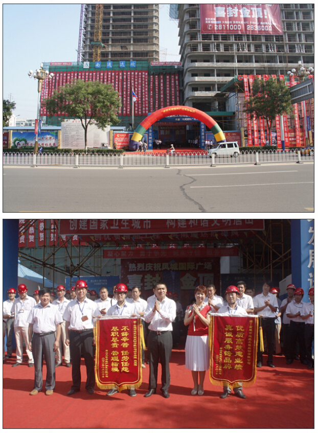 封頂儀式上,天壤地產(chǎn)闞春鳳董事長(zhǎng)、魯寧總經(jīng)理向項(xiàng)目施工單位、合作單位對(duì)于本項(xiàng)目的支持配合及付出的辛勤勞動(dòng)表示了誠(chéng)摯的感謝,給達(dá)欣公司頒發(fā)了“優(yōu)質(zhì)高效建業(yè)績(jī),真誠(chéng)服務(wù)鑄品牌”的錦旗,給項(xiàng)目經(jīng)理張維琪頒發(fā)了“不辭辛苦、任勞任怨,盡職盡責(zé)、管理楷?!钡腻\旗,以肯定和表彰我公司在鳳城國(guó)際廣場(chǎng)工程施工中所做出的成績(jī)。同時(shí)也希望大家繼續(xù)發(fā)揚(yáng)拼搏創(chuàng)新的精神,為天壤的發(fā)展和唐山的經(jīng)濟(jì)建設(shè)做出貢獻(xiàn)。