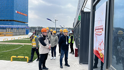 繆永建書記一行仔細(xì)聽取了本工程進(jìn)度情況,深入了解施工現(xiàn)場(chǎng),檢查現(xiàn)場(chǎng)管理,詢問施工中遇到的困難,并給予解決意見和建議。同時(shí),他對(duì)施工現(xiàn)場(chǎng)管理表示肯定,他指出達(dá)欣作為南通建筑行業(yè)的明星單位,要爭(zhēng)取在今年上半年南通市區(qū)安全生產(chǎn)觀摩工地展現(xiàn)出項(xiàng)目的亮點(diǎn)和品質(zhì)。