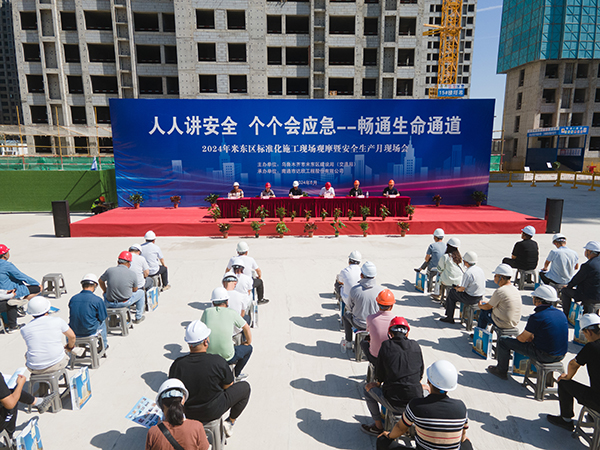 6月20日,由烏魯木齊市米東區(qū)建設(shè)局主辦的2024年米東區(qū)標(biāo)準(zhǔn)化施工現(xiàn)場觀摩暨安全生產(chǎn)月現(xiàn)場會在第十一工程公司承建的會展吾悅廣場五期項(xiàng)目舉行。米東區(qū)副區(qū)長馬連營,區(qū)應(yīng)急管理局局長鄒波,區(qū)建設(shè)局局長、黨組副書記姜磊;卡子灣街道辦事處主任周疆艷,區(qū)質(zhì)量安全監(jiān)督站站長宮強(qiáng),區(qū)質(zhì)量安全監(jiān)督站全體工作人員,第三方專家以及全區(qū)建設(shè)、監(jiān)理、施工單位負(fù)責(zé)人共計(jì)200余人、60多家建筑施工單位代表參加了此次觀摩會。