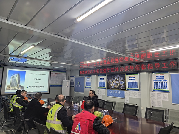 為推進建筑項目復(fù)工復(fù)產(chǎn)提質(zhì)增效,強化安全生產(chǎn)與合規(guī)管理,近日,江蘇省住房和城鄉(xiāng)建設(shè)廳駐天津辦事處戴主任一行到石家莊高鐵片區(qū)商務(wù)核心區(qū)58號地項目調(diào)研,工程公司總經(jīng)理傅海榮及項目部管理人員陪同。