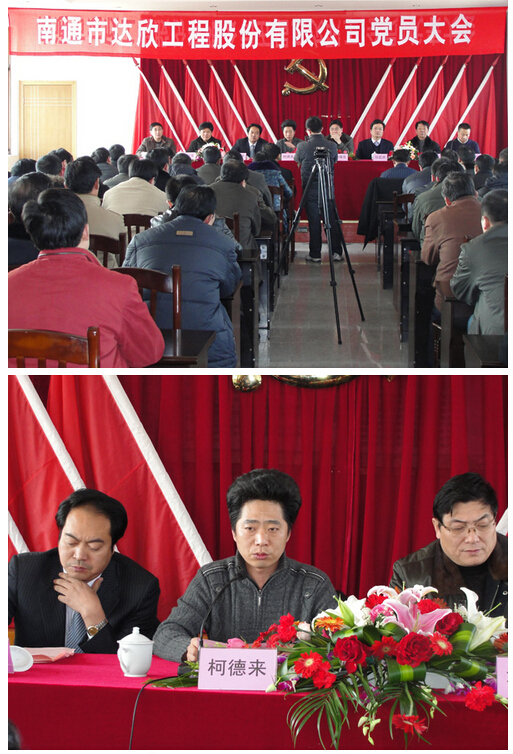 2月20日下午,公司全體黨員聚集在黨員活動(dòng)室召開南通市達(dá)欣工程股份有限公司黨員大會(huì)??h委常委、常務(wù)副縣長(zhǎng)柯德來(lái)、縣人大副主任、組織部副部長(zhǎng)章曙東、組織部副部長(zhǎng)陳興俊、組織科科長(zhǎng)成剛、吉清海、鎮(zhèn)黨委書記盧忠平、鎮(zhèn)長(zhǎng)錢亞洲及鎮(zhèn)黨委等領(lǐng)導(dǎo)在百忙之中參加了我公司的黨員大會(huì)。這次黨員大會(huì)共選舉產(chǎn)生了七位黨委委員:丁興元、馬和軍、劉厚純、陳春紅、徐仁忠、溫鶴華、謝果生,選舉產(chǎn)生了三位紀(jì)委委員:王建國(guó)、楊靜、徐仁忠。劉厚純?nèi)喂军h委書記、馬和軍任公司黨委副書記、徐仁忠任公司紀(jì)委書記。