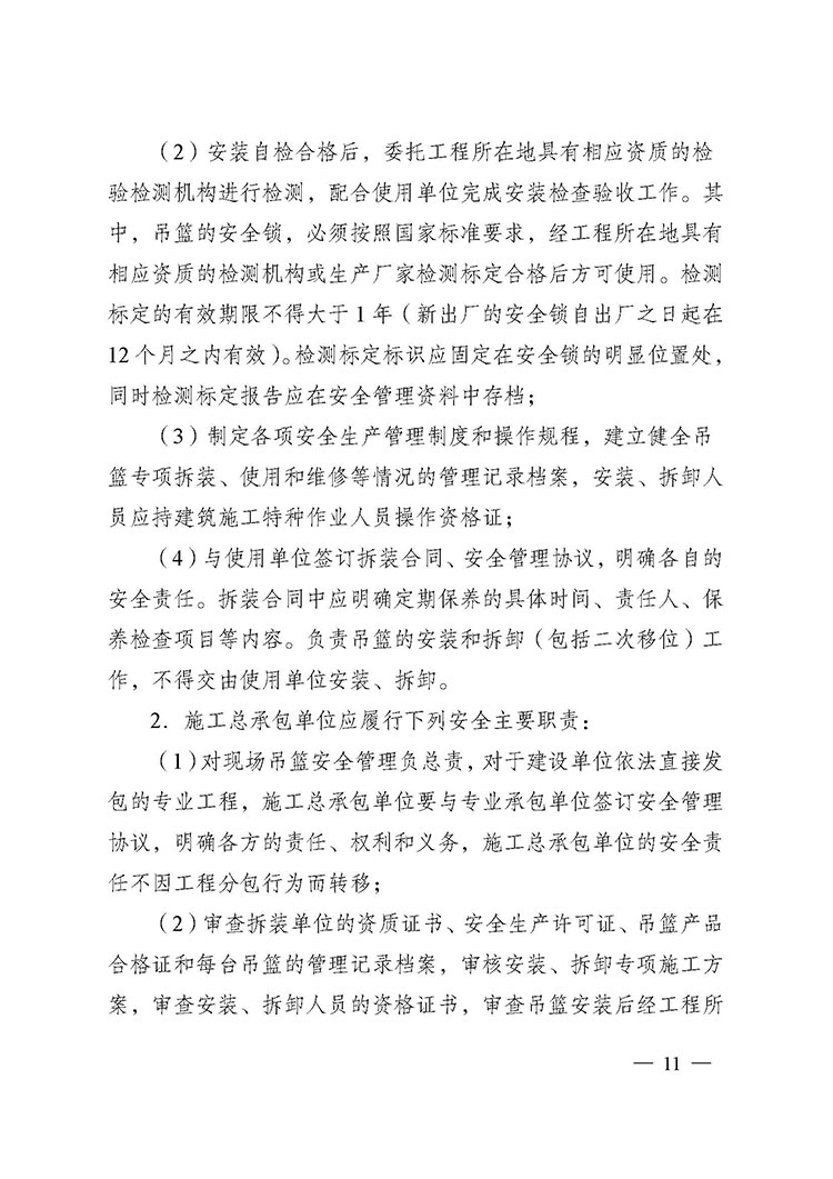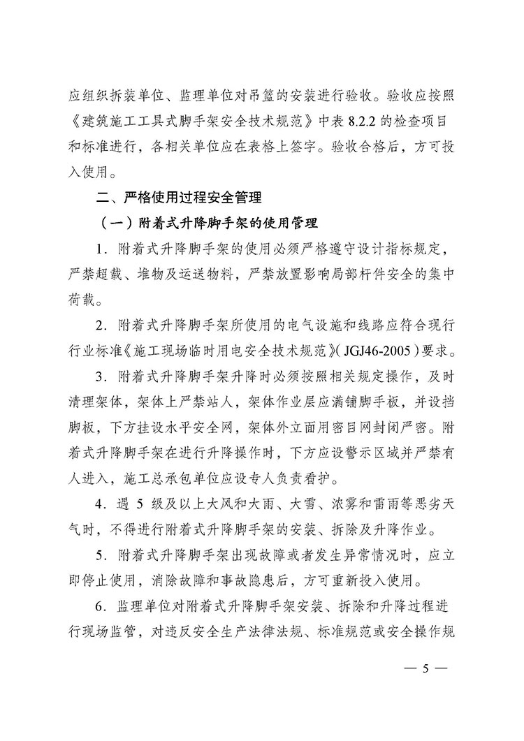 關于進一步加強附著式升降腳手架和高處作業(yè)吊籃安全管理的通知